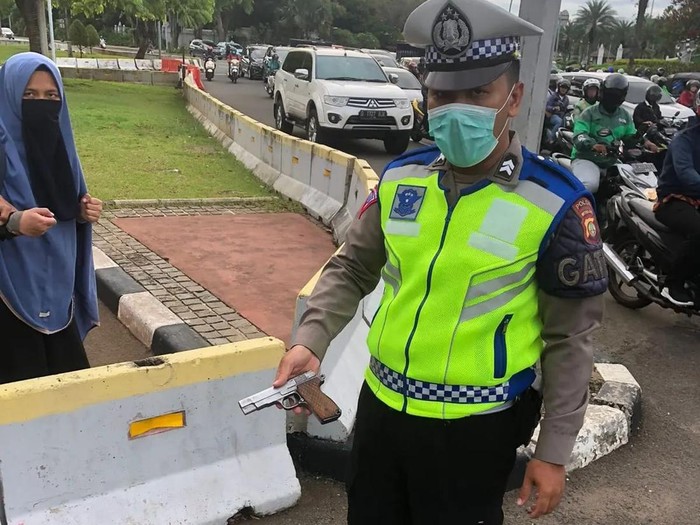 “Tepatnya di pintu masuk Istana menghampiri anggota Paspampres yang sedang siaga,” ujar Kombes Latif Usman Dirlantas Polda Metro.