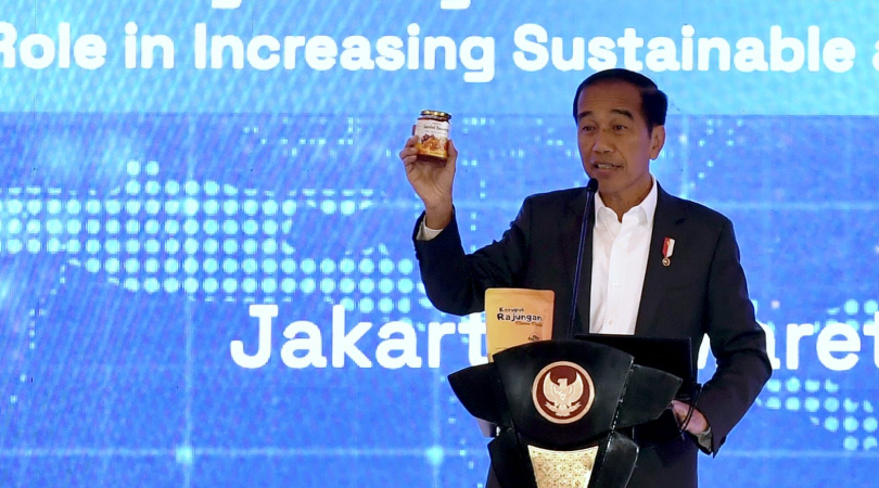 Presiden Joko Widodo juga memberikan apresiasi kepada produk UMKM sambal bawang yang berhasil masuk ke pasar global tersebut.